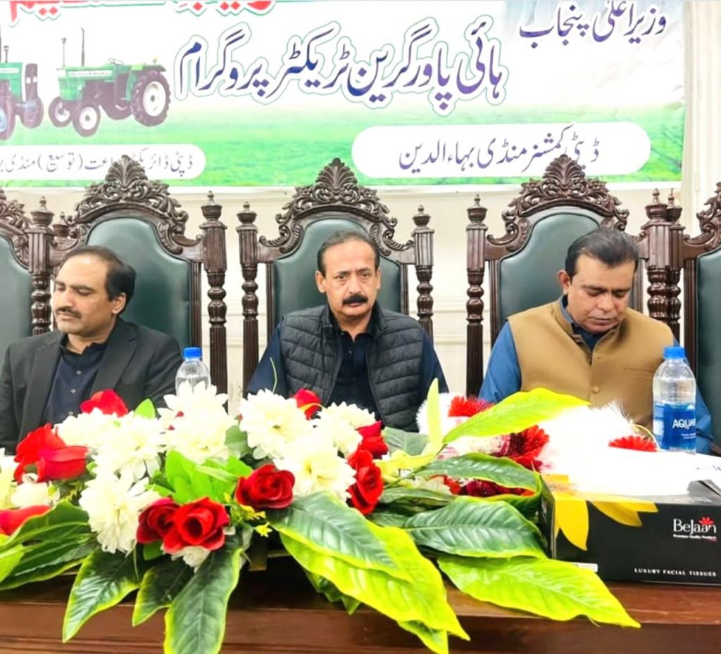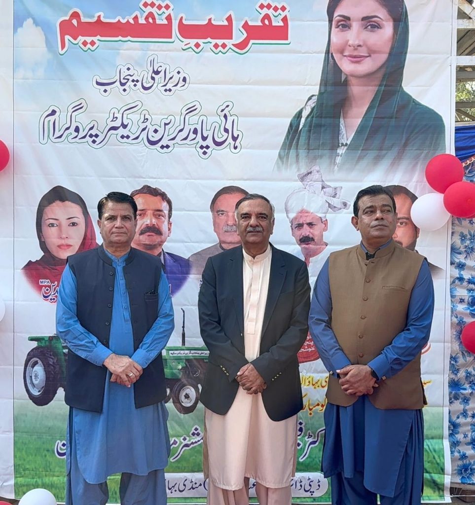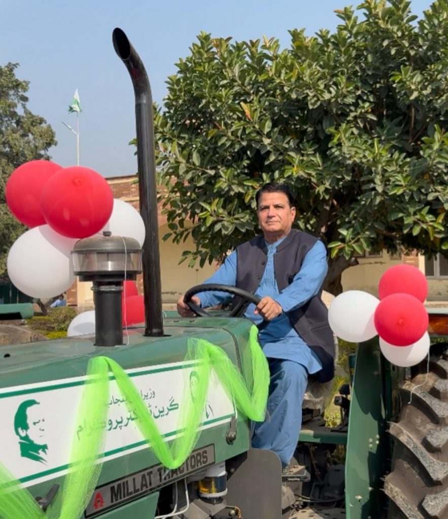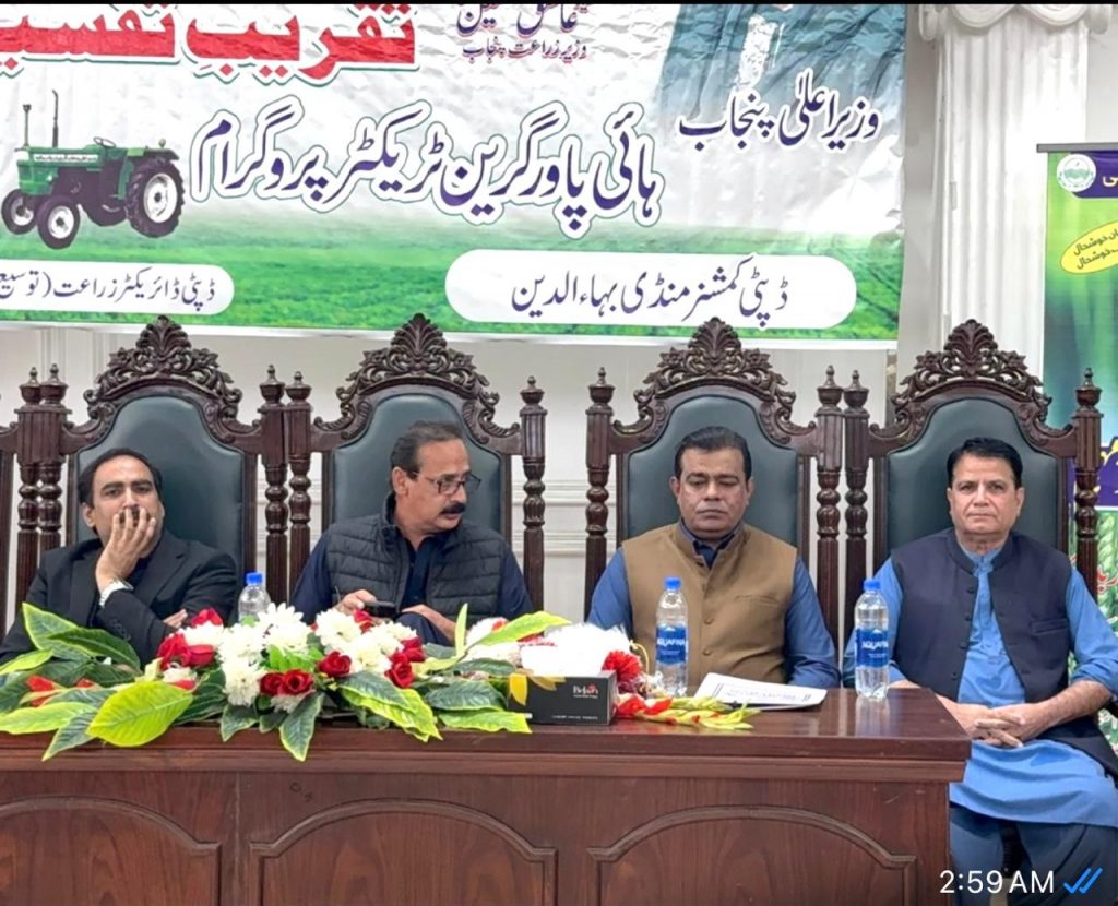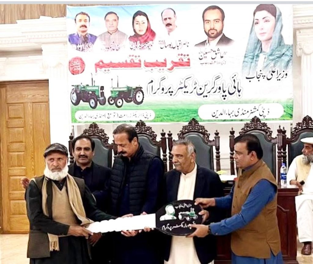 A grand ceremony was held at the District Council Hall, Mandi Bahauddin, to distribute the keys of high-power green tractors to farmers under the farmer-friendly policies of Chief Minister Punjab Maryam Nawaz Sharif. Member National Assembly Nasir Iqbal Bosal, Member Provincial Assembly Khalid Mehmood Ranjha and Additional Deputy Commissioner Revenue Muhammad Jafar Chaudhry were the chief guests. The ceremony was presided over by Deputy Director Agriculture Extension Sheikh Muhammad Iqbal. Nasir Iqbal Bosal MNA and Khalid Mehmood Ranjha MPA said in their addresses that due to the farmer-friendly policies of Chief Minister Maryam Nawaz Sharif, the agriculture sector in Punjab is developing day by day. The Chief Minister’s Green Tractor Scheme is a revolutionary initiative which will make farmers prosperous and increase crop production record and will help the country become self-sufficient in terms of food. Deputy Director Agriculture Extension Mandi Bahauddin Sheikh Muhammad Iqbal said that under the Chief Minister’s farmer-friendly vision, a subsidy of Rs. 1 million per tractor is being provided on 10,000 high-power tractors at a cost of Rs. 10 billion in Punjab province. He informed the participants in detail about the importance of agriculture, Green Tractors Scheme, Kisan Cards, subsidized seeds of approved varieties and agricultural machinery, and other agricultural facilities and measures. Sheikh Muhammad Iqbal said that under the Green Tractors Scheme, tractors are being distributed to 152 lucky farmers of Mandi Bahauddin district through an online transparent lottery. On this occasion, the farmers paid tribute to Punjab Chief Minister Maryam Nawaz Sharif and thanked her for giving the historic package.
