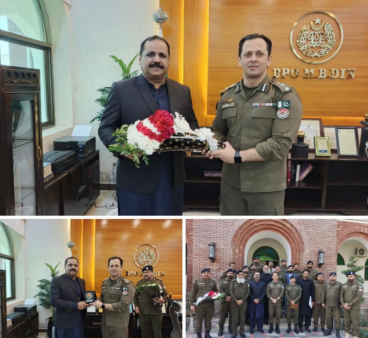 District Police Officer Mandi Bahauddin Syed Abdul Rahim Shirazi organized a farewell ceremony in honor of DSP Sadar Mandi Bahauddin Chaudhry Muhammad Amjad Khokhar, who was transferred from Mandi Bahauddin to Gujranwala. The farewell party was attended by DPO Syed Abdul Rahim Shirazi, SP Investigation Chaudhry Amjad Mahmood Gujjar, DS Legal Chaudhry Ghazanfar Hayat Tala, DSP Sadar Muhammad Amjad Khokhar, PSO to DPO Inspector Saifullah Ranjha, SHO Sadar Police Station Inspector Malik Saif Ali Awan, SHO Civil Line Police Station Inspector Hamid Nasir Ranjha, PRO to DPO Sub-Inspector Riyats Ali, OASI Transfers Sub-Inspector Moazzam Abbas Bosal, Soon SHO Sub-Inspector Amanullah Gondal, District Security Officer Sub-Inspector Muhammad Afzal, Deputy PSO Sub Inspector Muhammad Javed Gujjar, Ansar Aziz Sindhu, Operator to DPO Mujahid Bashir and other police officers participated. DPO Syed Abdul Rahim Shirazi presented a commemorative shield to DSP Muhammad Amjad Khokhar on behalf of the District Police and paid tribute in glowing terms to his performance during his posting in Mandi Bahauddin.
