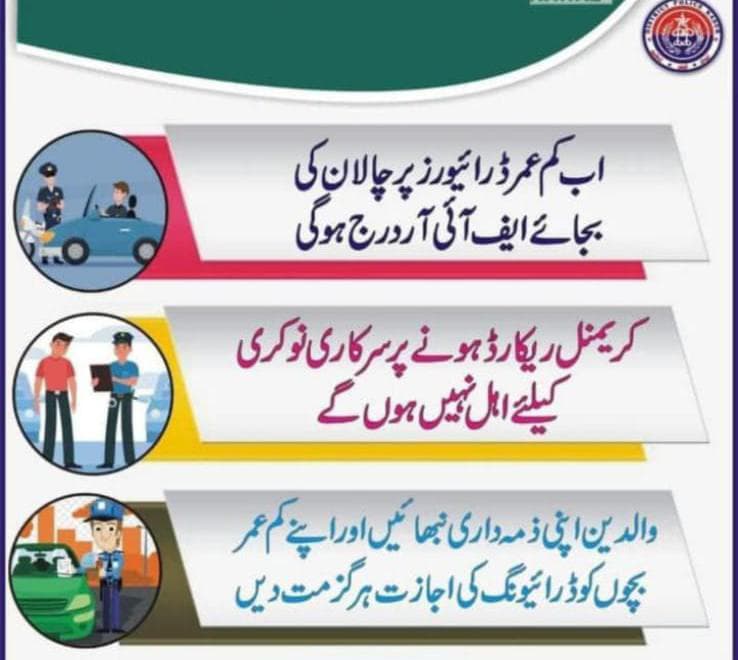 The Punjab government recently directed stricter enforcement of traffic laws against underage driving, including: