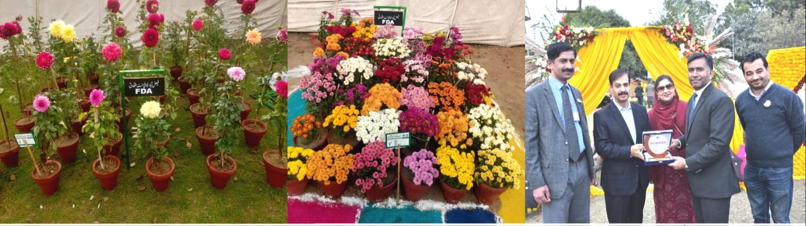 Faisalabad: The Faisalabad Development Authority (FDA) secured the first position at the annual three-day Chrysanthemum Exhibition, which was organized under the auspices of the University of Agriculture, Faisalabad (UAF). The FDA’s stalls were noted for their exquisite decoration. Director General FDA, Muhammad Asif Chaudhry received the shield for this achievement. Prominent figures present on the occasion included former MPA Najma Afzal, Director Horticulture Dr. Ahmad Sattar, Director Estate Management Sohail Maqsood Pannu, Consultant Horticulture Rana Sajjad and other experts. The exhibition was participated from various organizations, including UAF, FDA, PHA (Parks and Horticulture Authority), NIBG , Ayub Agricultural Research Institute and others. The competition featured six categories, including Cut Flowers, with the FDA achieving the top position in every category.Director General FDA Muhammad Asif Chaudhry praised the splendid arrangement of the Chrysanthemum Exhibition and paid tribute to the efforts of the organizers. He stated that such exhibitions are not merely a source of awareness about flower varieties but that the beautiful and pleasant colors of nature have deep positive effects on the human mind and soul. He added that these initiatives play a key role in reducing social suffocation and mental stress.The Director General further informed that a standard nursery has been established under the supervision of the FDA for the propagation of plants and flowers. He mentioned that in FDA City, special and effective arrangements are in place for decorating and maintaining flowers and plants in parks, green belts, roundabouts, and triangular spaces. The DG congratulated the FDA’s Horticulture Team and instructed them to maintain this high standard of plant and flower cultivation, consistent with aesthetic tastes, so that the FDA’s role in enhancing the natural beauty of Faisalabad remains prominent.