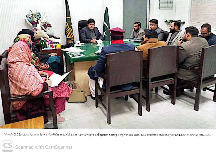 Chief Executive Officer District Education Authority Sahiwal Mian Muhammad Khalid Alam chaired an important meeting along with all District Education Officers and Deputy District Education Officers from across the district. At the beginning of the meeting, all the officers welcomed the newly appointed CEO Mian Muhammad Khalid Alam on his arrival and attendance in Sahiwal and expressed their best wishes. The meeting reviewed the overall situation of the education system of Sahiwal district, the performance of schools, the attendance of teachers and students, the improvement in the quality of education and the ongoing development projects in detail. On this occasion, CEO Mian Muhammad Khalid Alam directed the officers to ensure regular and effective field visits and closely monitor the attendance of teachers, registration of students and teaching process in schools. He clarified that it is the common responsibility of all of us to implement the educational vision of the Punjab government and no negligence or carelessness will be tolerated in this regard. During the meeting, the cleanliness, beautification, provision of basic facilities and security arrangements of schools were also discussed in detail. The CEO directed that a clean environment, clean drinking water, functional washrooms and other basic facilities should be ensured in all schools at all times. Moreover, special emphasis was laid on formulating a comprehensive strategy to improve educational outcomes, conducting additional classes for weak students and professional training of teachers. At the end of the meeting, CEO Mian Muhammad Khalid Alam exhorted all officers to perform their duties in a dynamic manner and make public service their top priority.