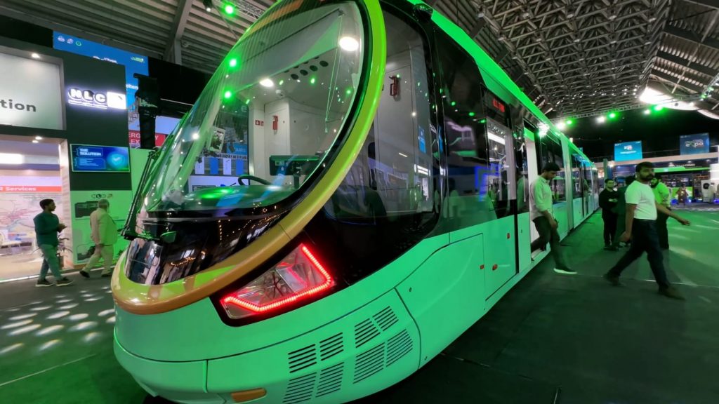 At the Electric Vehicle Expo in Lahore, a specially designed green tram became the center of attention, highlighting the city’s move toward sustainable transport.