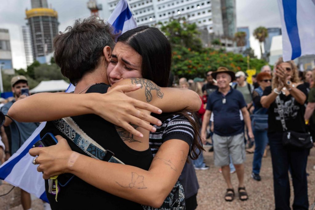 Crowds gathered near Israel’s Reim military base cheered and waved flags as a convoy believed to be transporting released Israeli