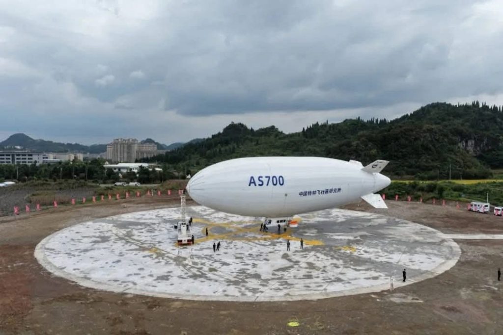 China’s domestically developed AS700 civil manned airship successfully completed its maiden flight in Guizhou Province. The aircraft reached 1,200 meters,