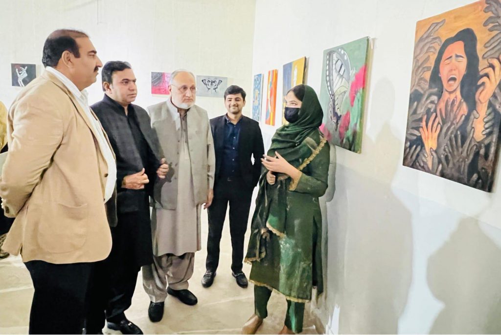 A calligraphy and painting exhibition created by girls under the title “Azm-e-Jawan” was organized by Punjab Arts Council Sahiwal Division in which budding artists presented their charming and creative works. At the end of the exhibition, certificates were also given to the participating girls. On the occasion of the inauguration of the exhibition, Additional Deputy Commissioner General Dr. Niaz Ahmed Mughal said that the growing commitment of young girls to fine arts is very welcome, their creative thinking and subtlety positively adds to our social consciousness. He said that the girls’ stepping confidently into the world of art is proof of their mental maturity and positive training and such platforms encourage them to move forward. Senior leader of Muslim League (N), Pir Ehsanul Haq Idrees, who participated in the exhibition, said that art awakens the beauty within a person and the connection of girls with this tradition is very commendable. Director Punjab Arts Council Sahiwal Dr. Riaz Hamdani said that the Punjab Arts Council is always active in highlighting the art of youth, especially girls, and providing them with better opportunities, and Azm-e-Jawaan is a representative exhibition of its continuation. Special thanks were extended to Mian Afzal for providing valuable assistance in organizing the exhibition. The artists who expressed their creative talents in this exhibition included Zainab Babar, Iqra Fatima, Asma Liaquat, Huma Arafat, Thabeela Kiani, Sobia Mahmood, Hafsa Amin, Javeria Aziz, Zeenat Hassan and Mah Noor Zafar.