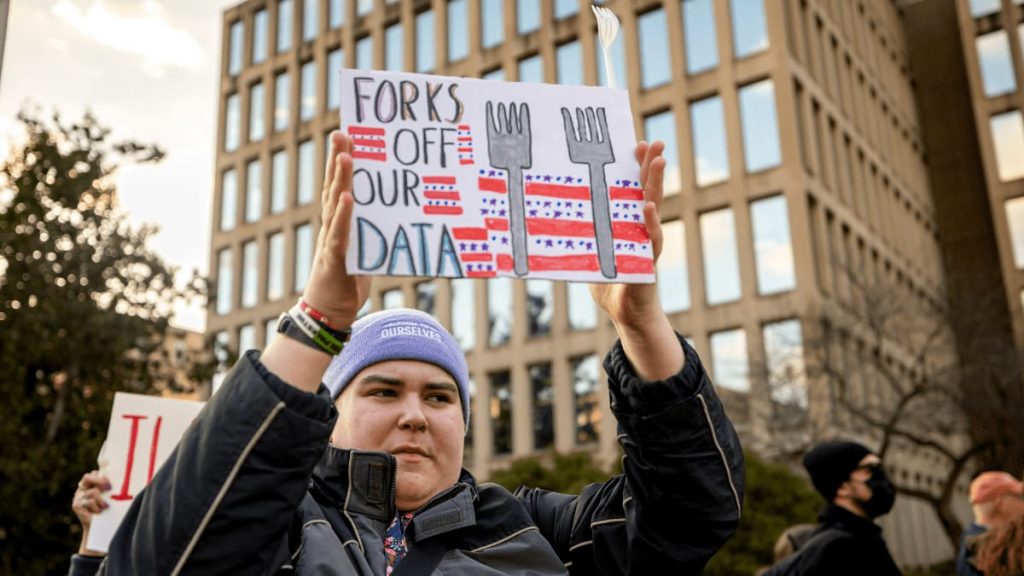 Tens of thousands protested across the U.S. against President Trump’s immigration crackdown, transgender rights rollback, and tariffs on allies. Organized