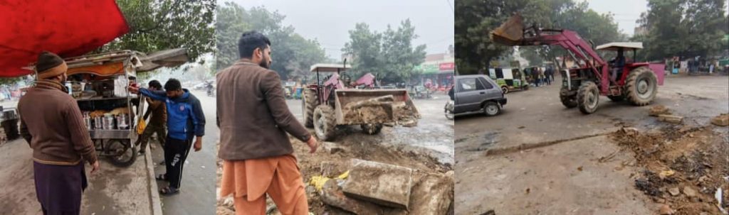 Faisalabad: On the directives of Director General FDA Muhammad Asif Chaudhry, the FDA Anti-Encroachment Team conducted a grand operation in Gulistan Colony, successfully removing all types of encroachments from Akbarabad Chowk and providing relief to the public. Using heavy machinery, permanent encroachments were demolished, while business items placed on public pathways were confiscated and taken into custody. Challans of 10 shopkeepers involved in encroachments were sent to the court of the Special Judicial Magistrate.