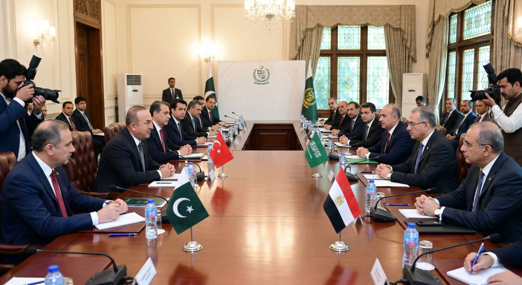 Islamabad / Middle East – Diplomatic efforts to ease the escalating Iran war are underway as foreign ministers from Pakistan, Turkiye, Egypt, and Saudi Arabia meet in Islamabad.
