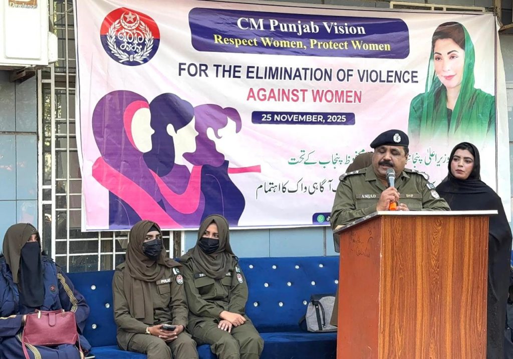 On the instructions of Punjab Chief Minister Maryam Nawaz Sharif, an awareness walk was organized under the supervision of District Police Officer Mandi Bahauddin Syed Abdul Rahim Shirazi on the occasion of the International Day for the Elimination of Violence against Women. Led by DSP President Mandi Bahauddin Muhammad Amjad Khokhar and District Traffic Officer Rashid Bashir, the awareness walk started from Government Children’s Hospital and ended in front of the press. A large number of police personnel, civil society, lady police officers, police station officials, DSPs and police participated in the awareness walk led by Inspector Traffic Tabassum Naveed Bhatti, Public Relations Officer to DPO Sub-Inspector Riyasat Ali, Bureau Chief SAMAA Lahore and PTV News correspondent Mandi Bahauddin Raja Muhammad Ayub, Senior Head Muharram Police Station City Khurram Shahzad Jatt. Addressing the participants of the walk, Police DSP President Muhammad Amjad Khokhar said that the purpose of celebrating this day is to raise awareness to end violence against women. Under the leadership of DPO Mandi Bahauddin Syed Abdul Rahim Shirazi, comprehensive steps have been taken to protect women’s rights, including widespread strict action against harassment and violence against women. So far, immediate action has been taken on the complaints of the affected women and cases have been registered against the responsible parties. Stressing the need to raise awareness in the society against violence and harassment against women, he said that every oppressed woman can approach Mandi Bahauddin Police to get legal assistance for her rights and to end traditional violence against her. DPO Mandi Bahauddin Syed Abdul Rahim Shirazi has ordered police officers across the district to take strict practical steps to prevent and remedy such incidents. DSP Muhammad Amjad Khokhar further said that in view of the special orders of Inspector General of Police Punjab Dr. Usman Anwar and the special instructions of DPO Syed Abdul Rahim Shirazi, the district police is fully mobilized for the rights of women in Mandi Bahauddin district and immediate action is taken on complaints of violence and harassment against women.